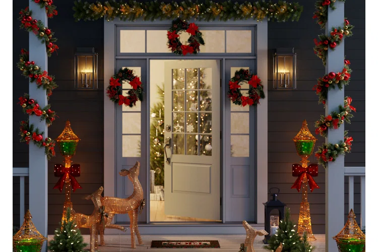 - Hang a Christmas wreath on the door